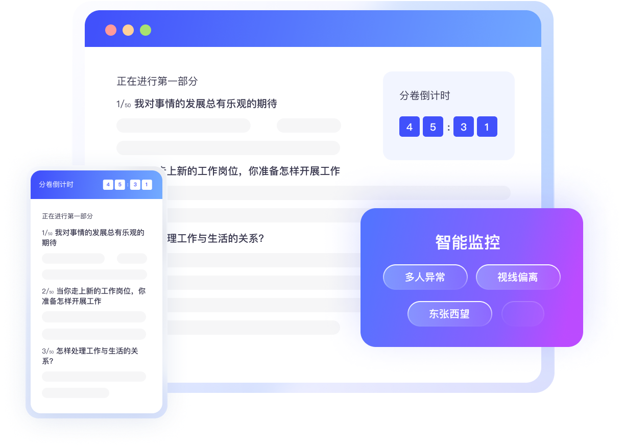 多种监控技术全程覆盖防止作弊,笔试更规范