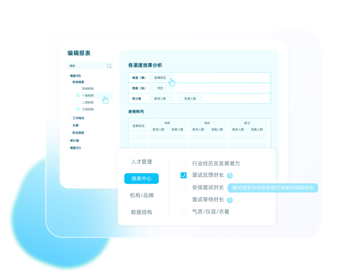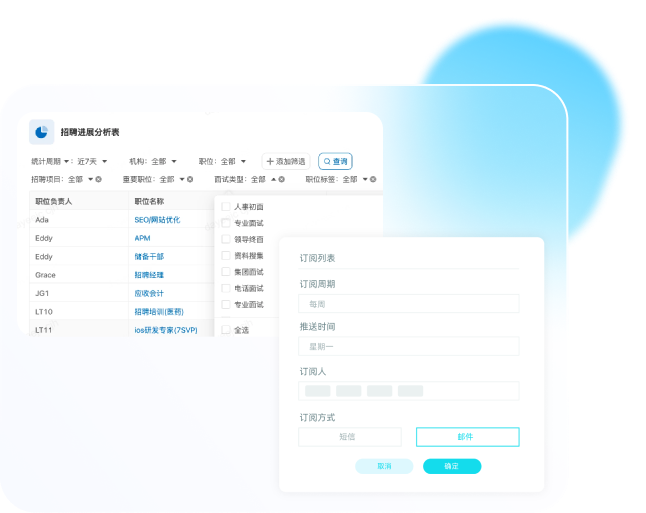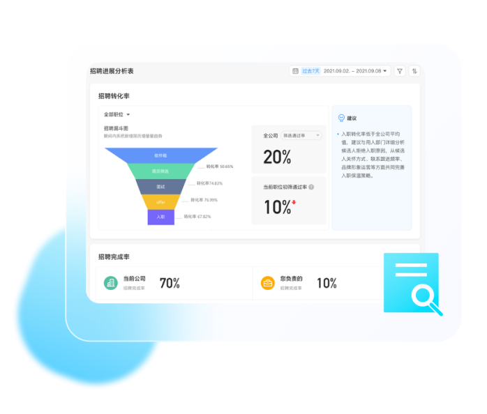 · 系统预置社招、校招等HR常用数据分析模板,全面观测招聘动态