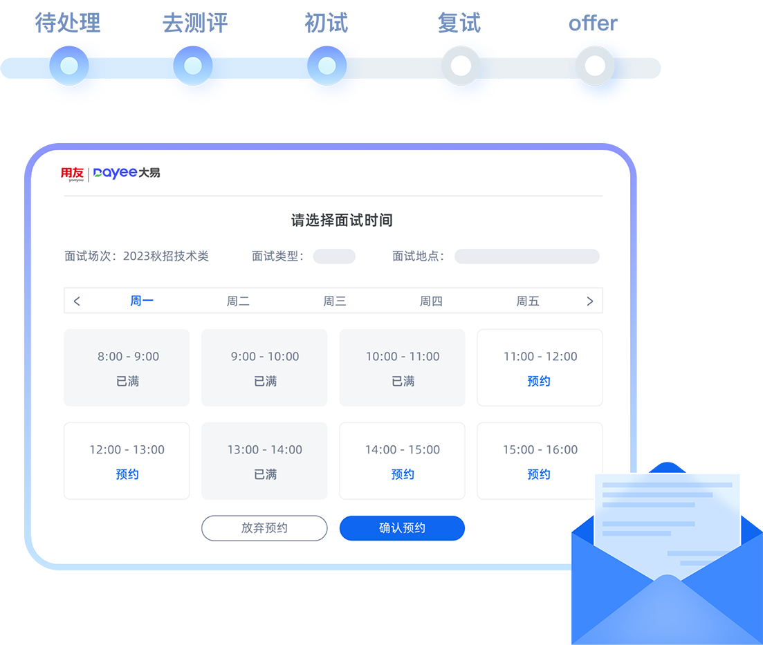 候选人可以自由预约可面试时间,如影院选座般轻松自如