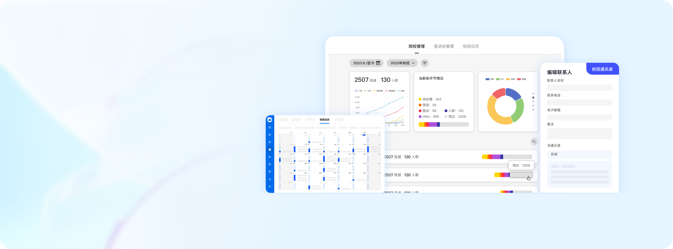 直观展现每日招聘数据和宣讲会行程安排,进展实时更新,让校招安排井然有序