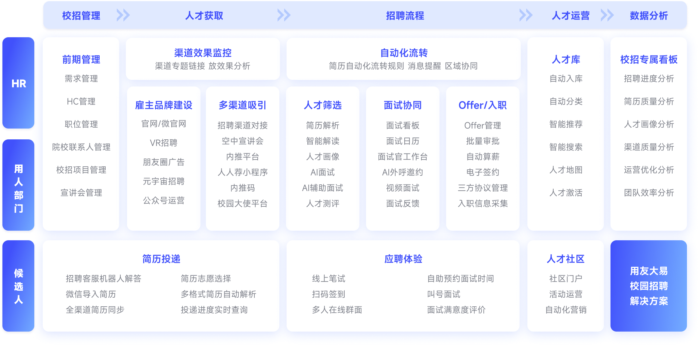 校园毕业生对企业的印象来自招聘的每个细节,过于繁琐、缺乏交互性的招聘流程会影响应聘体验,降低人才的积极性和忠诚度
