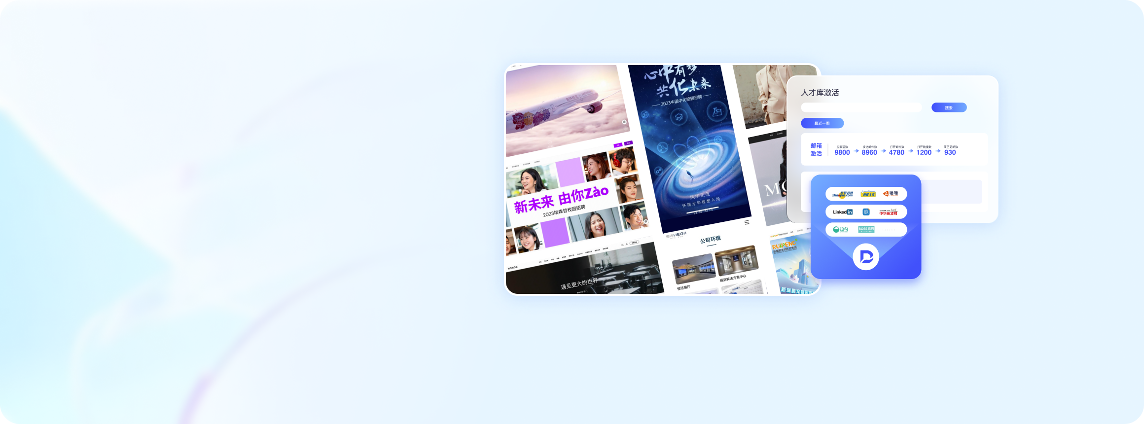 聚合120+主流招聘网站,快速发布职位、收集简历,实现社招渠道一站式管理