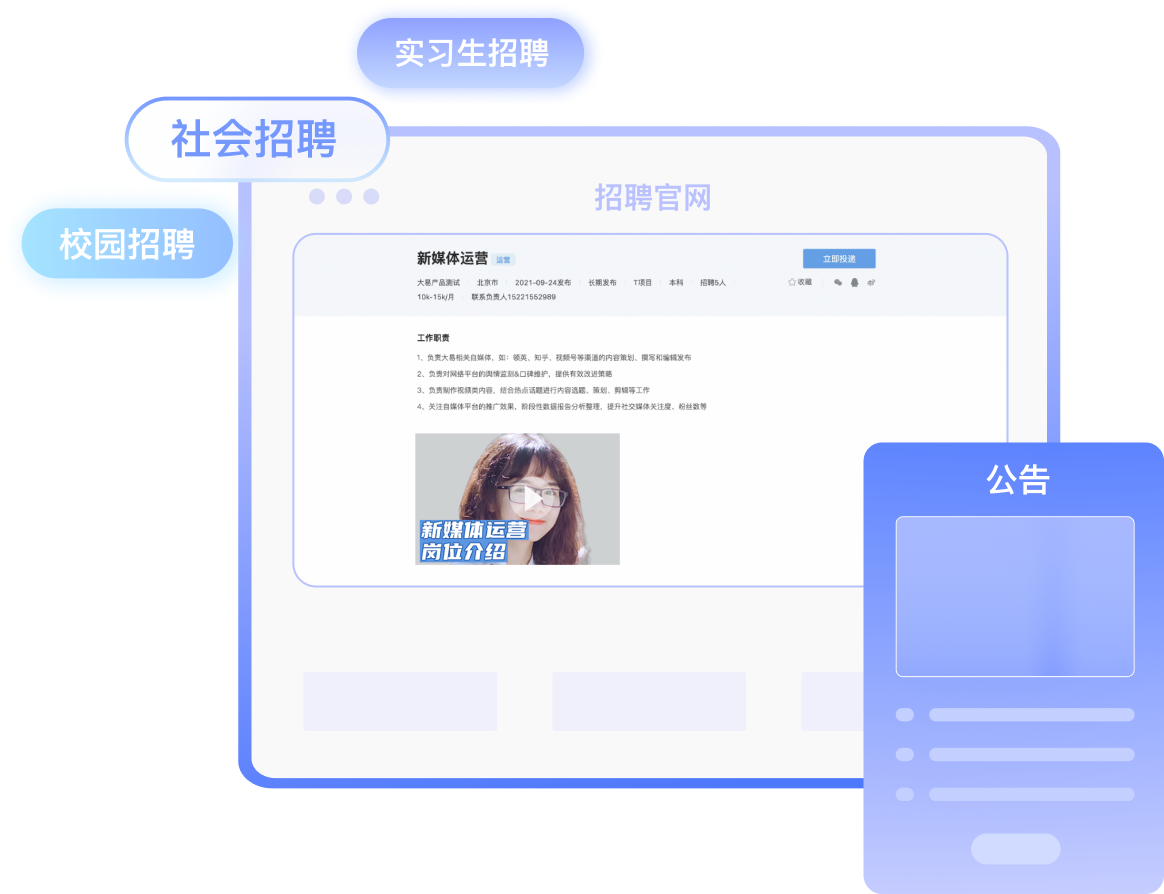 根据国央企企业特性快速搭建多媒体招聘官网/微官网,视频banner和JD增强候选人体验
