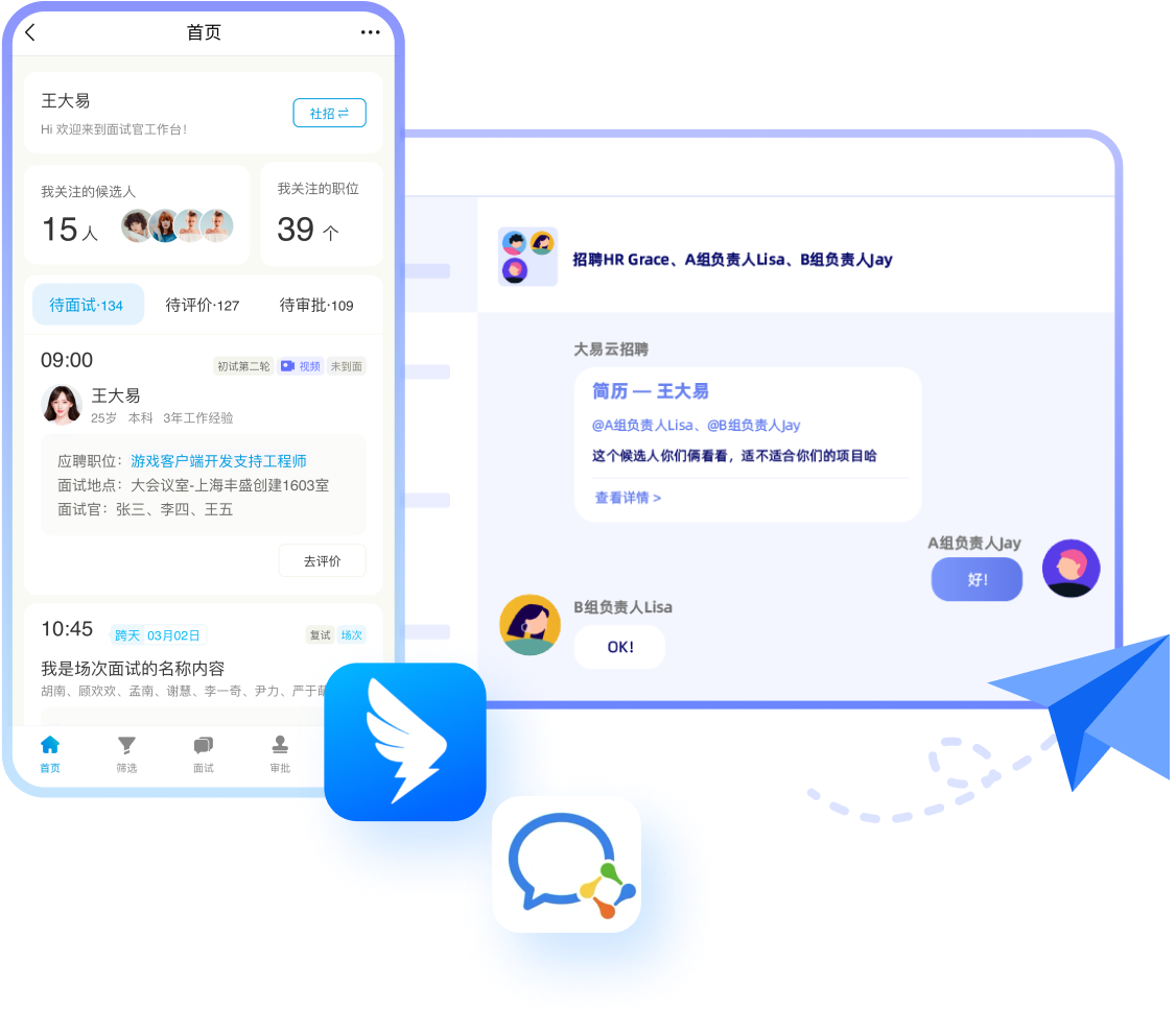 根据职位一键生成多方沟通群,自动同步简历和招聘进展,实现跨地域的高效招聘协同
